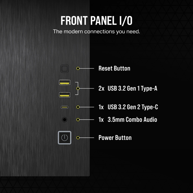 Bahias: Internas: 2 x 3'5, 2 x 2'5 Color del Producto: Negro Conectores: USB 3.0 x 2, USB-C x 1, Audio In/Out F.A.: No Formato: Micro ATX Formato F.A.: ATX Medidas: 376 x 469 x 304mm Potencia F.A.: Sin fuente