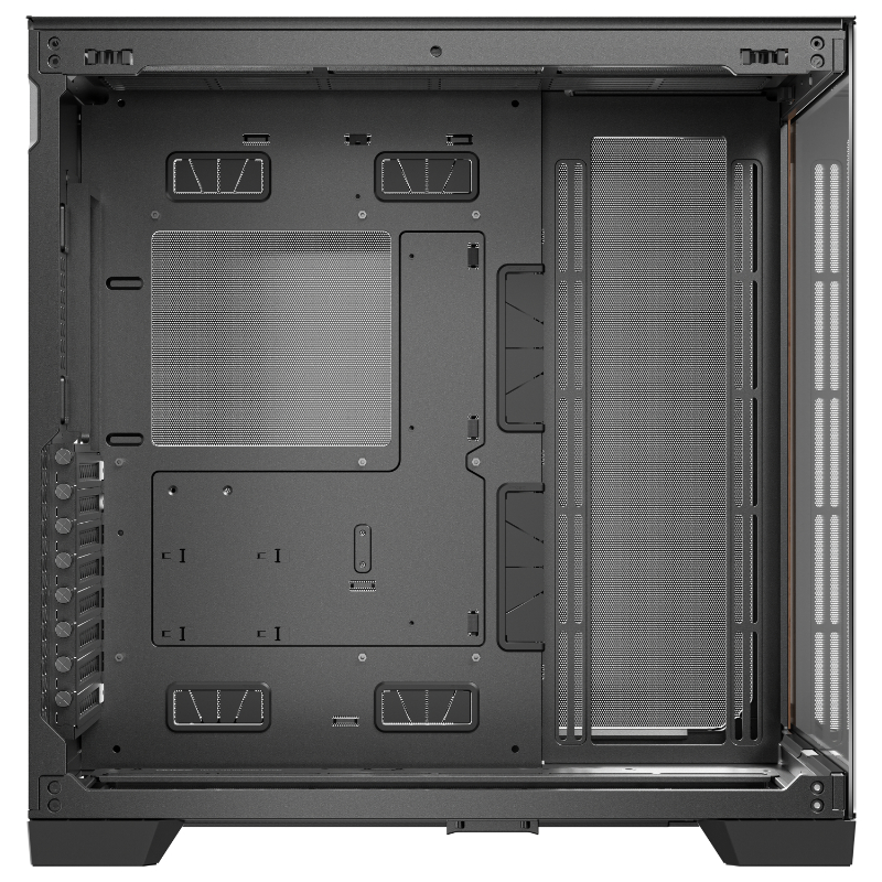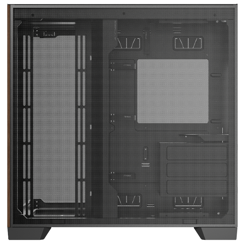 Los paneles frontal e izquierdo emplean una técnica única de biselado de 45° que rompe la barrera entre las dos piezas de vidrio. El borde extremadamente fino de la junta de vidrio mejora la experiencia visual ininterrumpida, panorámica y ultratransparente de la vista de 270°, lo que permite una exhibición completa de componentes de PC de alta gama y efectos de iluminación deslumbrantes.