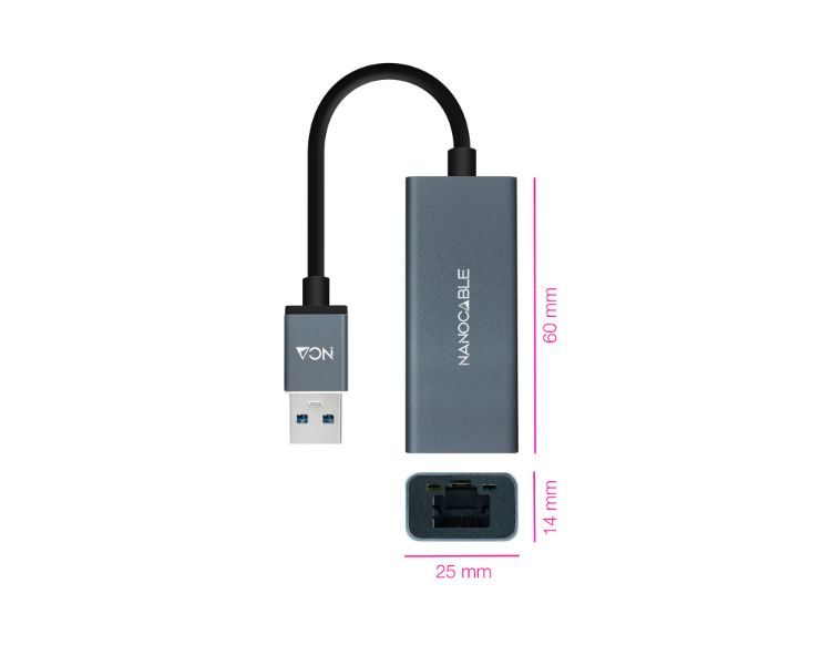 CONVERSOR USB 3.0 A ETHERNET GIGABIT 10/100/1000 Mbps 15 CM GRIS NANOCABLE